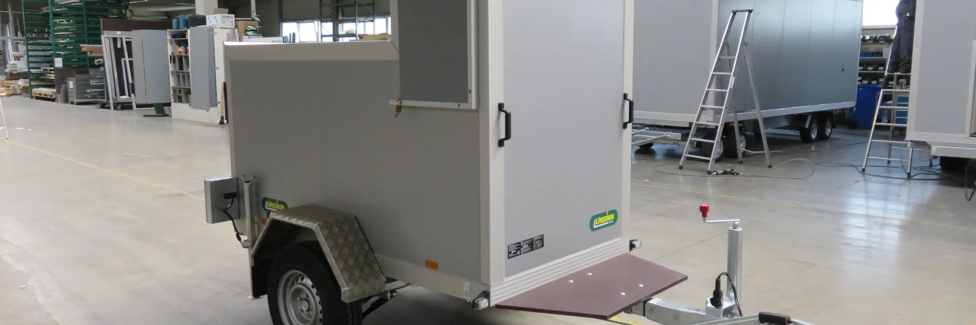 Einen Verkaufswagen als Anhänger ganz nach Ihren Wünschen bekommen Sie bei UNSINN – dem Spezialisten für Anhänger-Sonderbauten. Egal, ob Sie eine Sonderausstattung, spezielle Ausstellungsdisplays oder eine ausklappbare Terrasse benötigen: Mit UNSINN wird’s möglich!