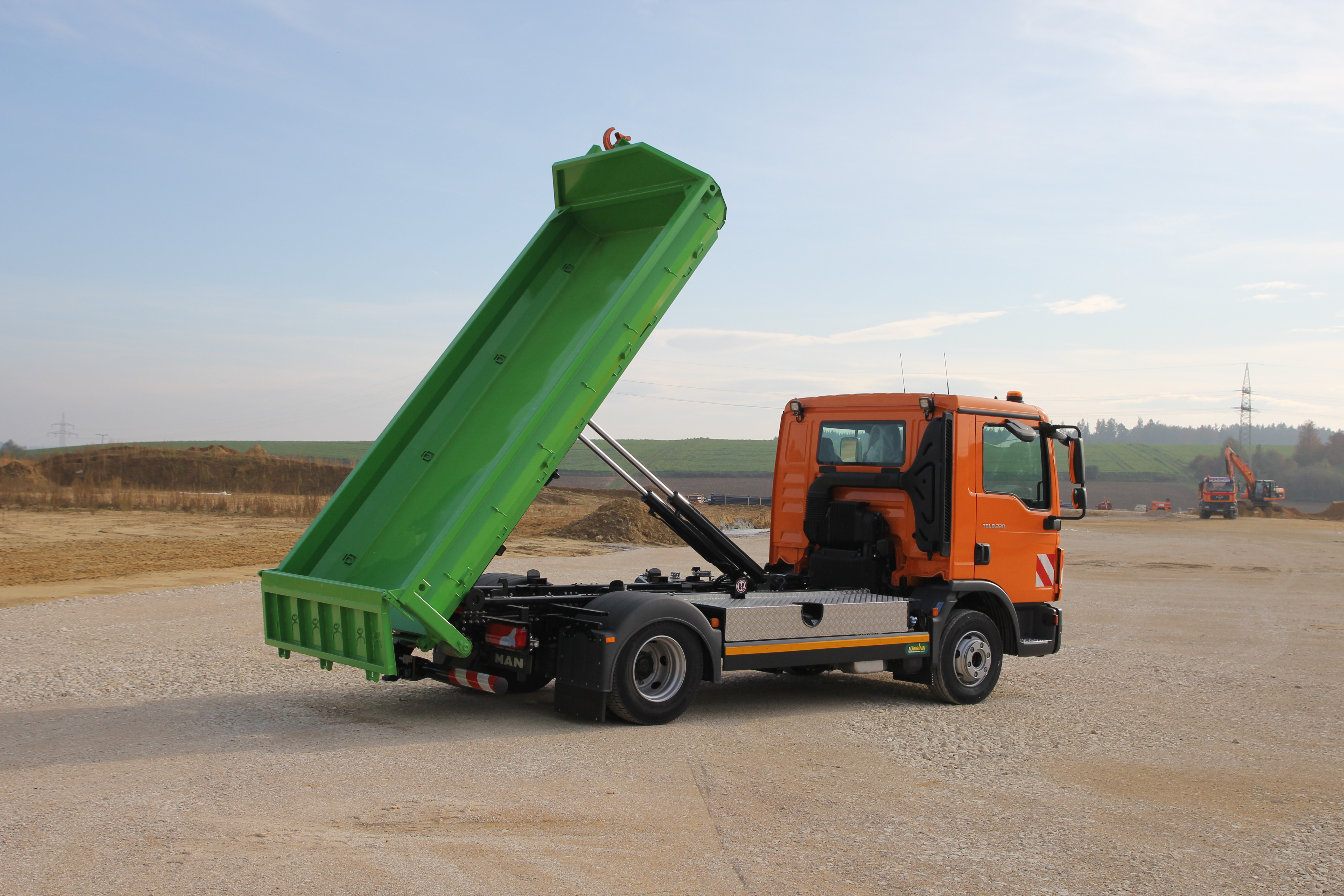 Die UNSINN Schüttgutmulde ist besonders geeignet für beispielsweise Kies, Sand und auch den Baggertransport.