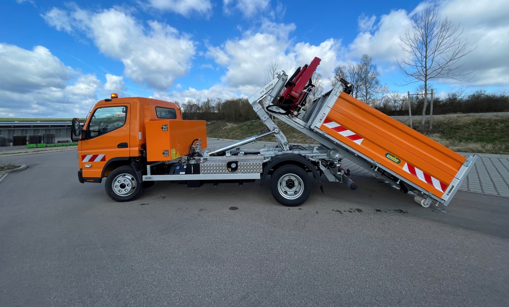 Keine andere Farbe prägt Kommunalfahrzeuge so sehr wie Orange. Für die unsere Produktlinie gibt es somit nur eine logische Bezeichnung: UNSINN Orange. Dieser Name steht für hochwertige Abrollkipper und PKW-Anhänger, die auf die vielfältigen Transportaufgaben kommunaler Betriebe spezialisiert sind – von der Garten- und Landschaftspflege über die Straßenreinigung und Abfallentsorgung bis hin zum Einsatz im Katastrophenfall. Unzählige Einsätze, die sich mit nur einem Fahrzeug erledigen lassen.