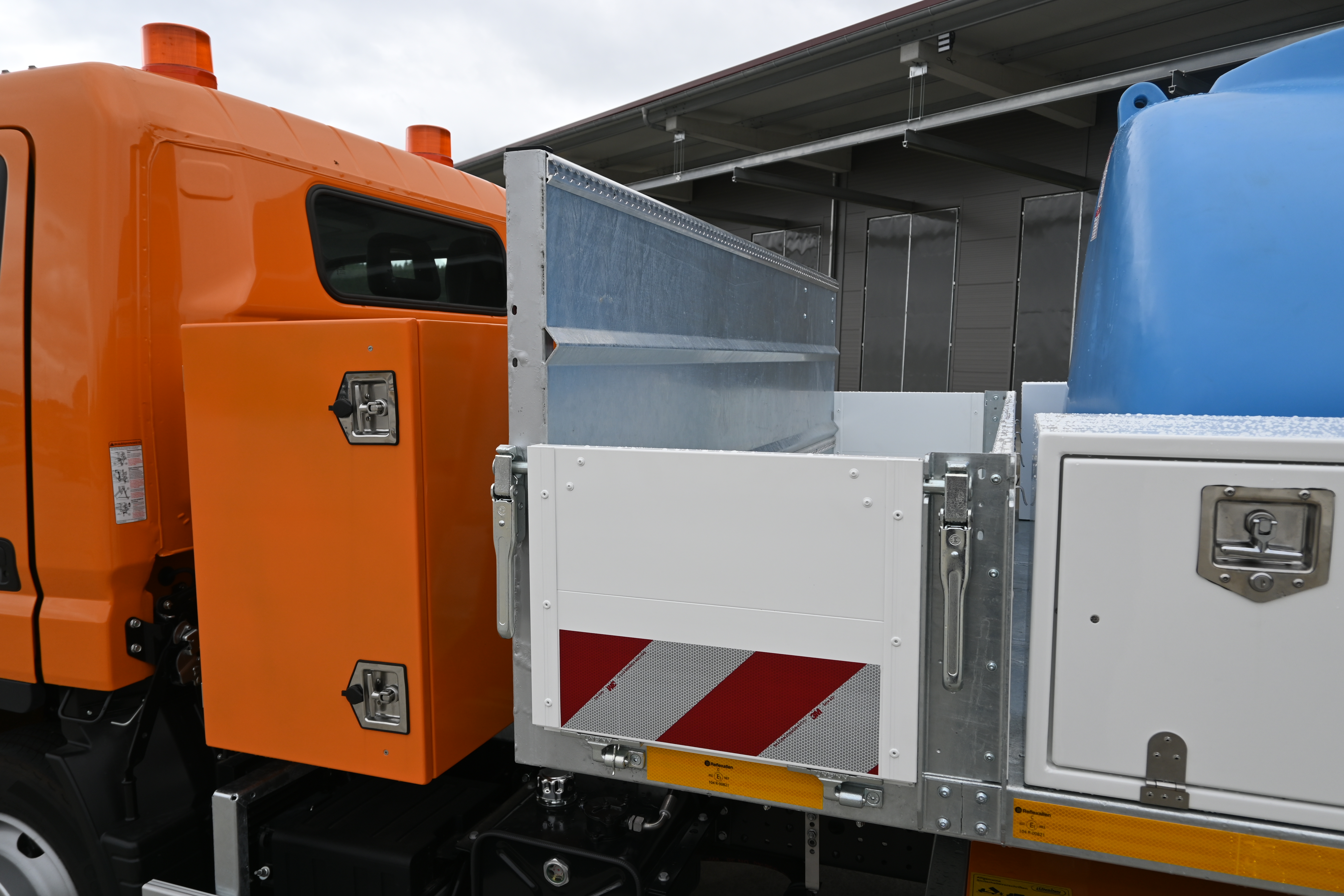 Durch die Bauweise nach DIN 30722-3 lässt sich ein Container mit Fahrzeugen unterschiedlicher Klassen (bis 12 t zGG) transportieren. Container und Arbeitsgeräte können am Einsatzort bleiben, während das Fahrzeug mehrere Stellen bedient. Die Abrollkipper überzeugen mit einer hohen Transportkapazität, einer langen Lebensdauer, der einfachen Handhabung und geringen Rüstzeiten. Praktische Extras wie Rundumkennleuchten, Werkzeugkisten, Netzboxen, eine Rückfahrkamera u.v.m. bieten zahlreiche Möglichkeiten zur individuellen Fahrzeuggestaltung.