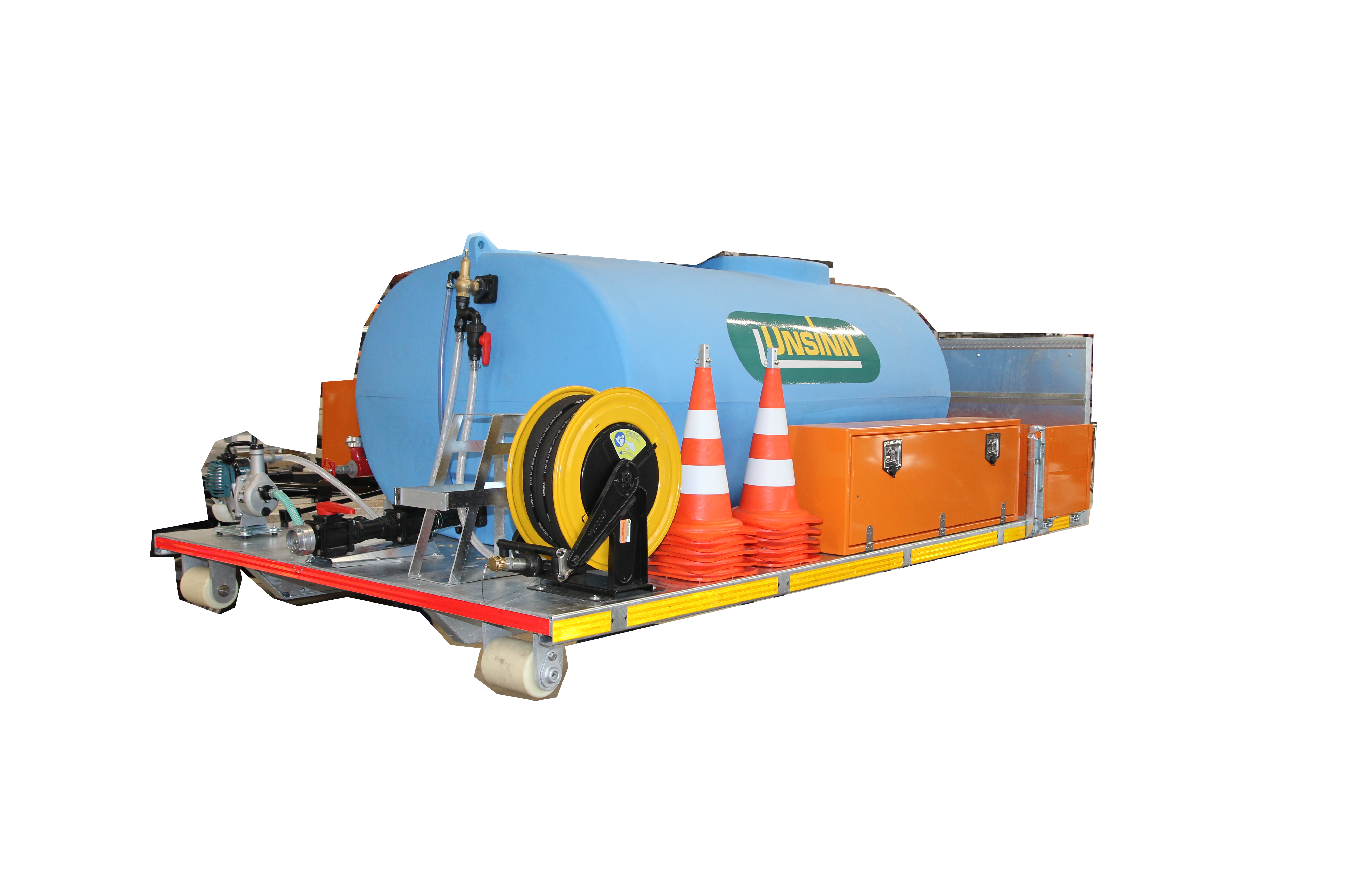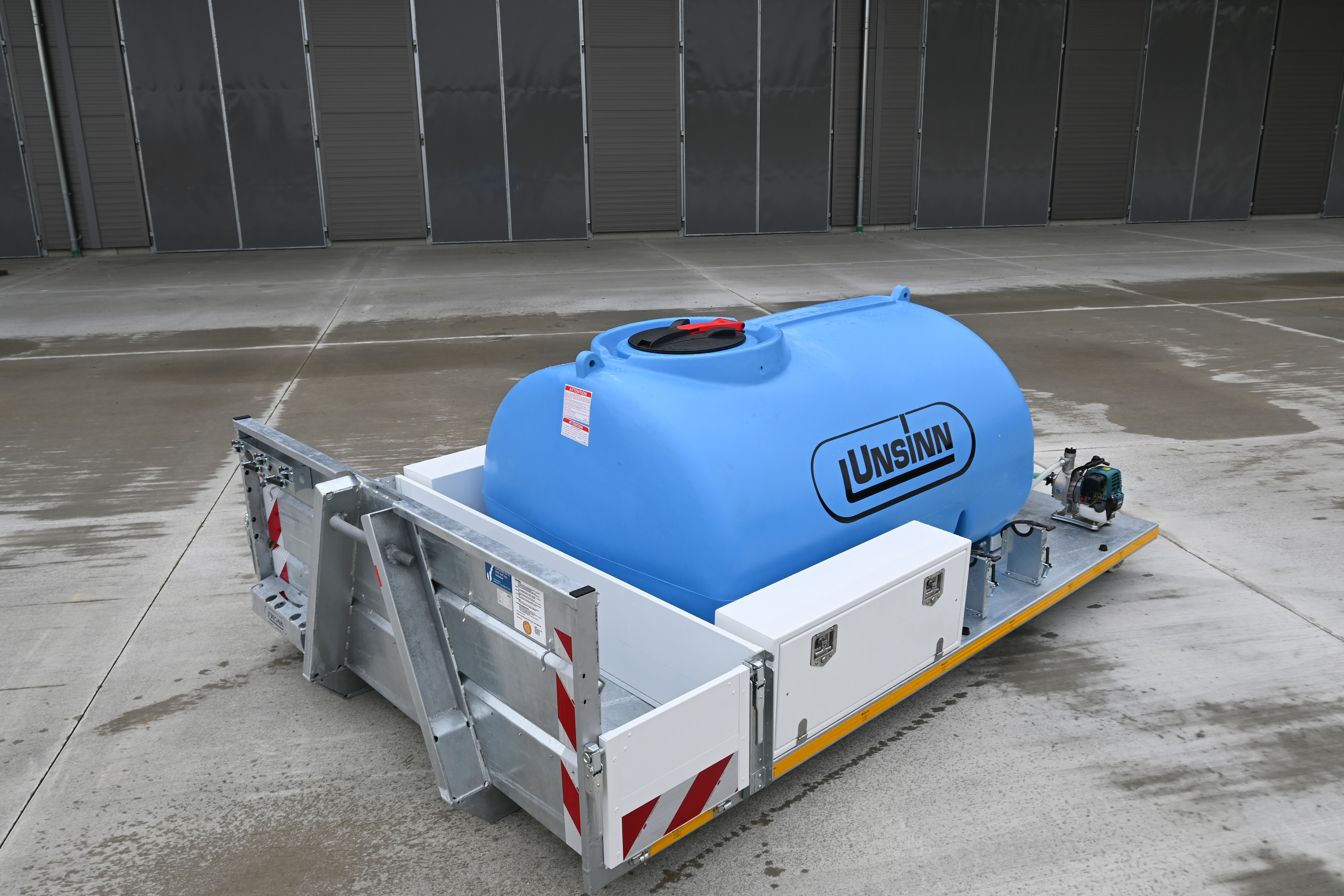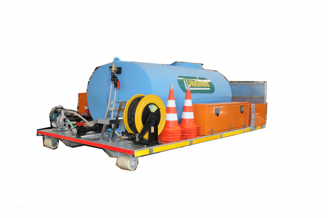 Bei der Bewässerung von Grünflächen hilft ein Wasserfass- bzw. Gießcontainer - ideal im Sommer. Der Tank kann direkt am Hydranten befüllt werden, die Bewässerung erfolgt mithilfe einer Motorpumpe.