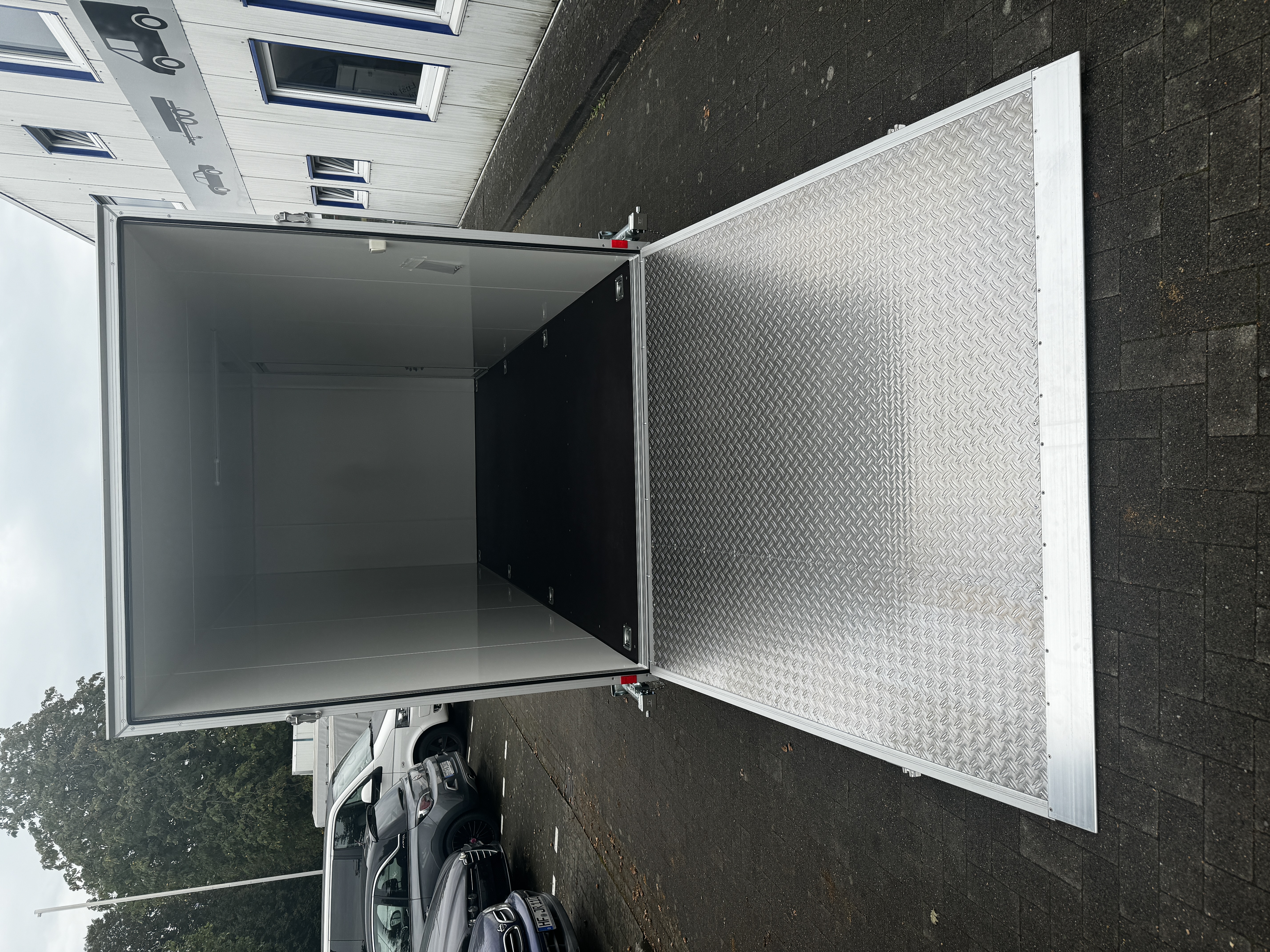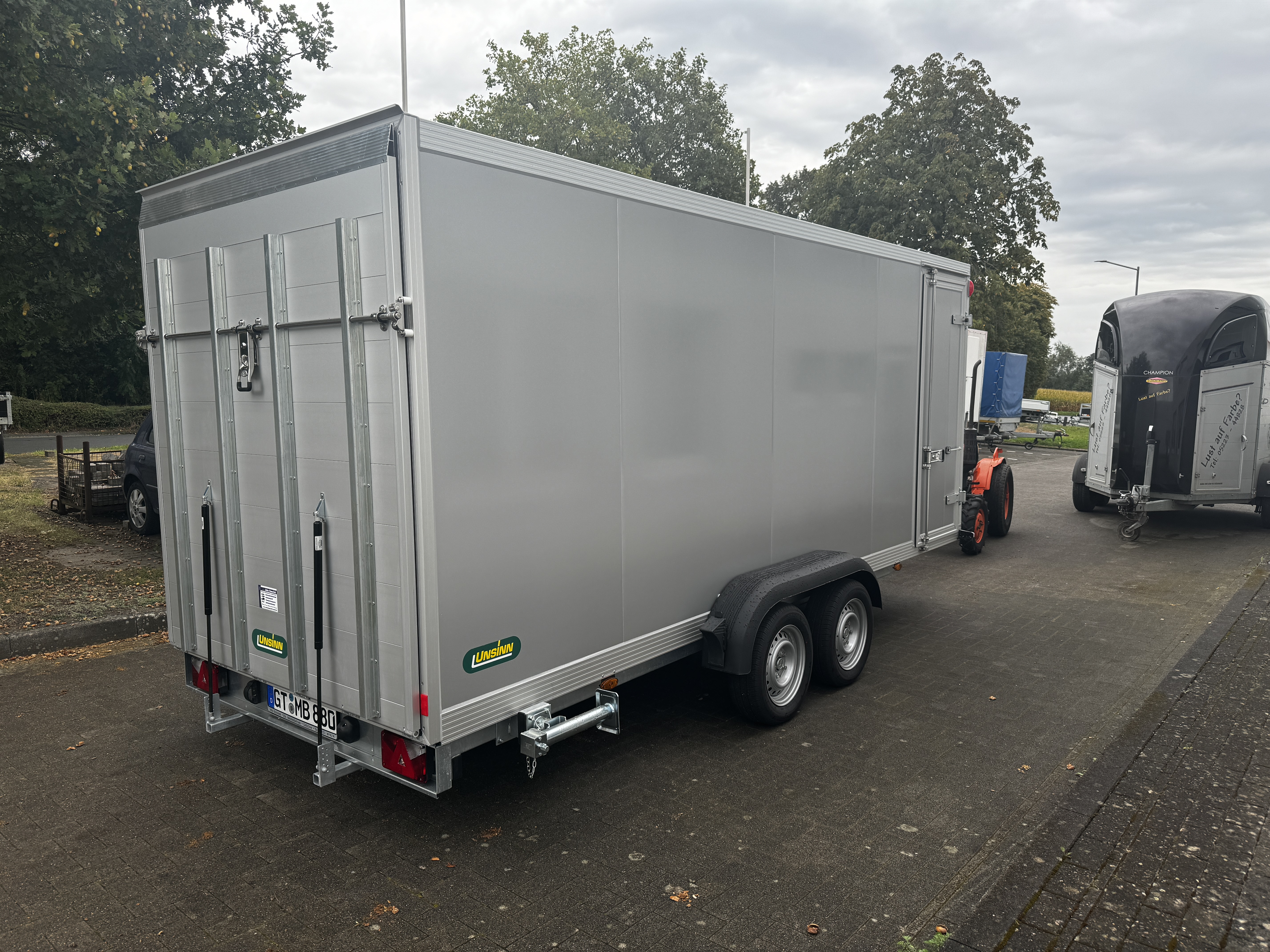 • Doppelflügelige Hecktür mit Gummidichtung, Aluminium-Scharnieren, Edelstahl-Drehstangenverschluss