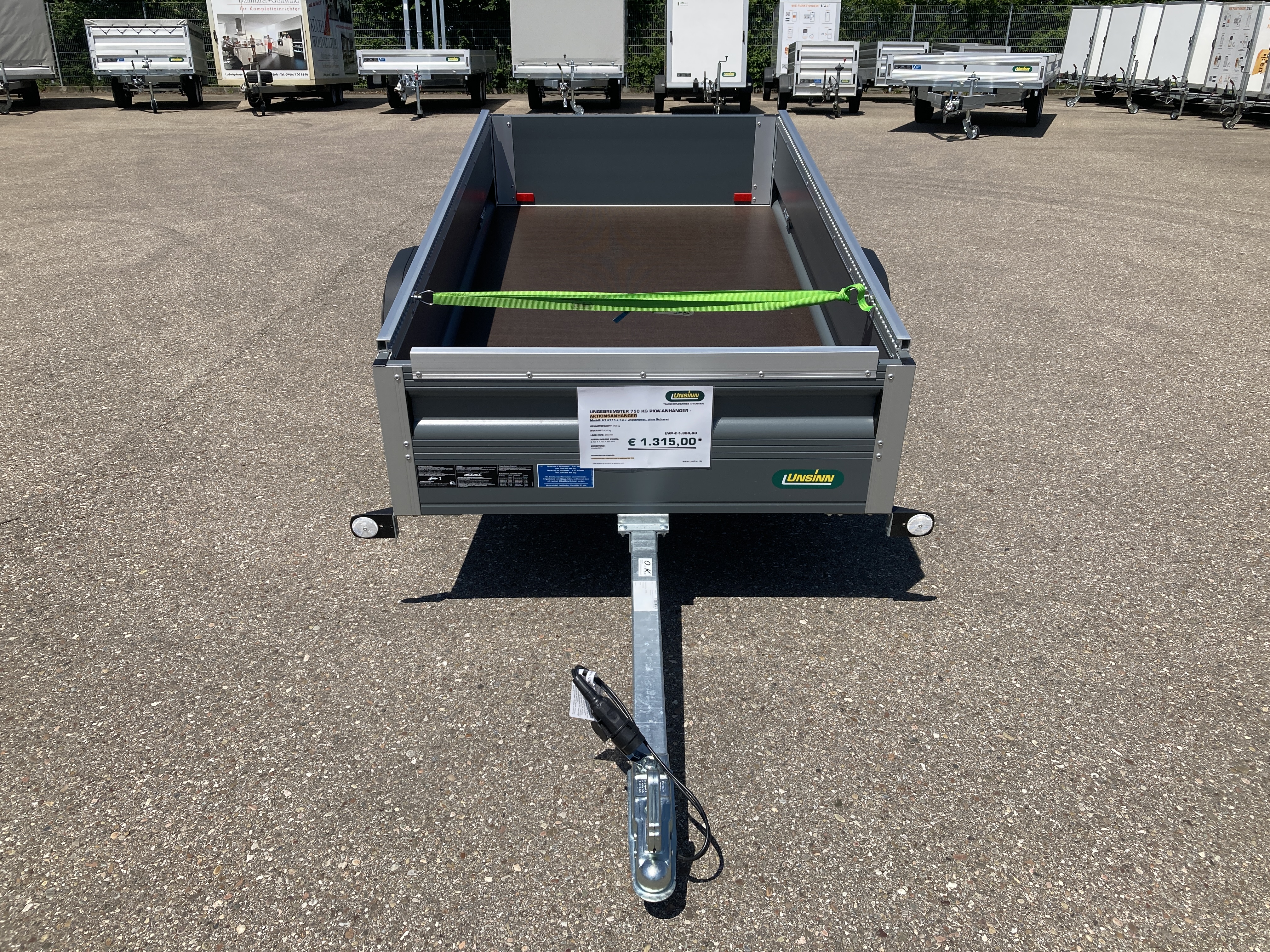 Ungebremster 750 kg 1-Achs-PKW-Anhänger mit pulverbeschichteten Bordwänden in RAL 7012 basaltgrau