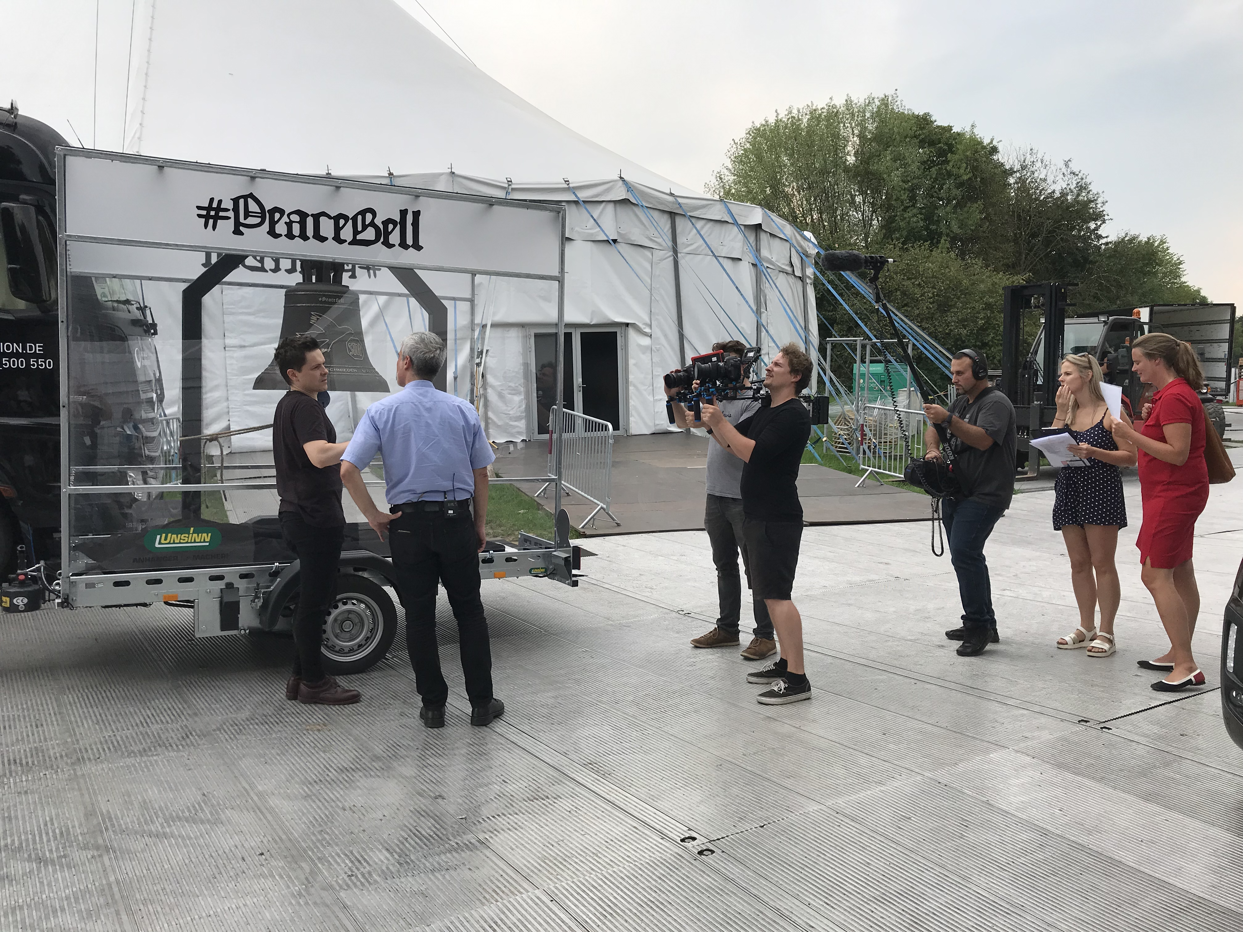 Dieses Ziel verfolgt der Künstler Michael Patrick Kelly mit seinem Projekt „#PeaceBell“. Zum 100. Jahrestag des Endes des Ersten Weltkrieges am 11. November 2018 stellte er eine 81 Zentimeter große Glocke in der Mainzer Christuskirche vor. Diese wurde aus eingeschmolzenem Kriegsschrott wie Waffen, Granaten und Patronenhülsen gefertigt und soll für Frieden auf der Welt werben sowie dazu anzuregen, über persönliche Konflikte nachzudenken. Das eingeschmolzene Material stammt aus der französischen Region Verdun, wo eine der verheerendsten Schlachten des Ersten Weltkriegs stattfand. Seit ihrer Fertigstellung wird die PeaceBell an verschiedenen Orten vorgestellt. Auch bei jedem Konzert des Künstlers ist die Glocke dabei und wird regelmäßig angeschlagen, um eine Gedenkminute für den Frieden einzulegen. Die UNSINN Fahrzeugtechnik GmbH hat hierfür einen spezifisch angefertigten Absenkanhänger konstruiert, um den bestmöglichen Transport des symbolträchtigen Objekts zu gewährleisten. Somit begleitet der UNSINN Absenkanhänger, beladen mit der PeaceBell, Michael Patrick Kelly und sein Team bei seiner Tour und der Mission, für Frieden auf der Welt zu werben.