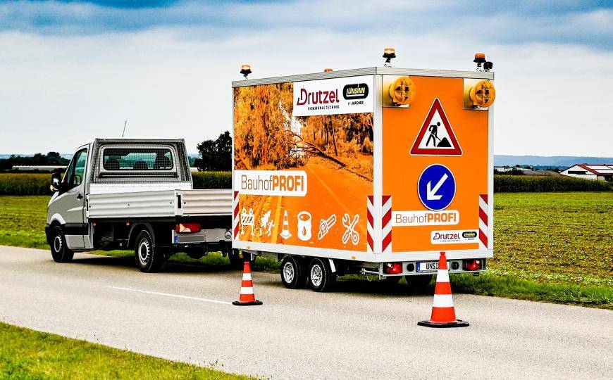 Der neue Anhänger der UNSINN Fahrzeugtechnik und Drutzel Kommunaltechnik ist der perfekte Begleiter für Kommunen, Bau- und Betriebshöfe, Hausmeisterservices und Straßenmeistereien. Der BauhofPROFI sorgt nicht nur für mehr Sicherheit der Arbeiter auf Baustellen oder im Grünpflege-Einsatz, er überzeugt auch mit seiner flexibel konfigurierbaren Ausstattung, die ihn zu einem wahren Multitalent macht. Ob Absperrmaterial, Kabel oder Rohre – der Anhänger verfügt über die perfekten Tools und ist rasch für unterschiedlichste Erfordernisse einsetzbar. Der neue BauhofPROFI funktioniert als optimaler Notfall-Anhänger sowie als Materialtransporter.