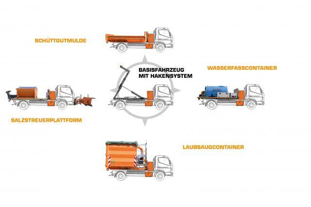 UNSINN Orange: Ein Abrollkipper, viele Einsatzmöglichkeiten: Unzählige Einsätze, die sich mit nur einem Fahrzeug erledigen lassen.