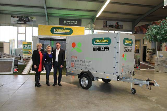 Die Firma UNSINN aus Holzheim spendet 1200 Euro an die DKMS und einen Anhänger mit Plane an die Sozialstation in Meitingen.