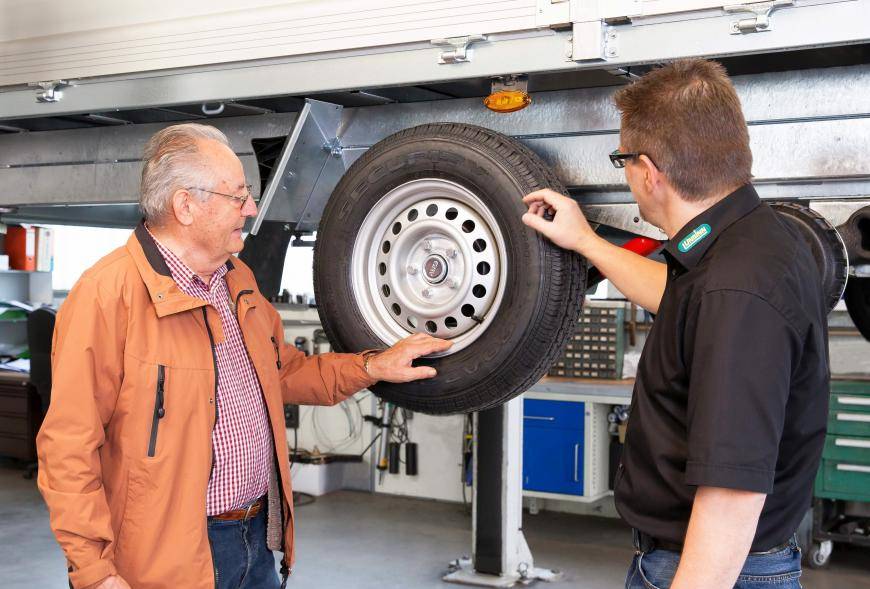 Die Reifen sind ein wichtiger Punkt bei der Hauptuntersuchung, denn sie sorgen dafür, dass der Anhänger seine Last tragen kann. Das Mindestprofil der Reifen ist vom TÜV auf 1,6 mm festgelegt. Eine Möglichkeit, die Profilabnutzung zu prüfen, besteht darin, eine 1-Euro-Münze in das Profil zu legen. Verschwindet der goldene Rand vollständig im Profil, ist die Profiltiefe ausreichend.