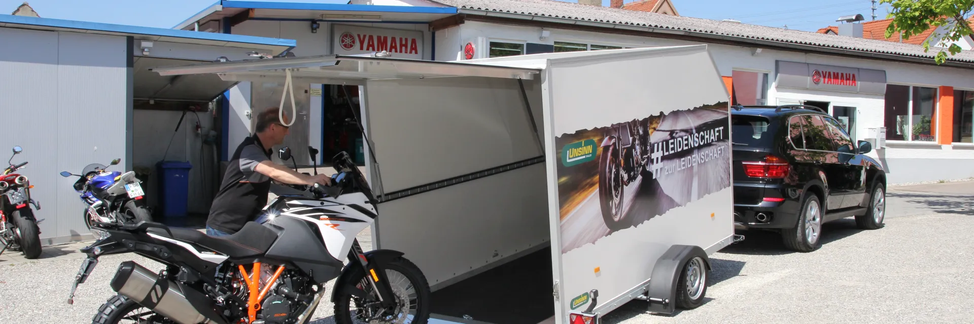 Doch welcher Anhängertyp ist nun der richtige? Wer häufig ein oder mehrere Motorräder transportiert, für den ist ein spezieller Motorradanhänger wie zum Beispiel ein Absenkanhänger ideal. Denn dank der hydraulischen Absenkfunktion lässt sich das Motorrad mühelos aufladen, ohne dass eine Auffahrschiene erforderlich ist. Der Anhänger lässt sich mit Bordwänden nachrüsten, um ihn für weitere Zwecke nutzbar zu machen.Ein absenkbarer Kofferanhänger schützt das Motorrad zudem vor Wind und Wetter. Aber auch ein klassischer Tieflader mit niedriger Ladehöhe, bei dem das Bike über eine Auffahrschiene auf den Hänger gelangt, kann für den Transport genutzt werden. Diese sind zudem ideale Allzweckanhänger und können somit neben dem Motorsport auch für andere Transportaufgaben rund um Haus und Garten genutzt werden.