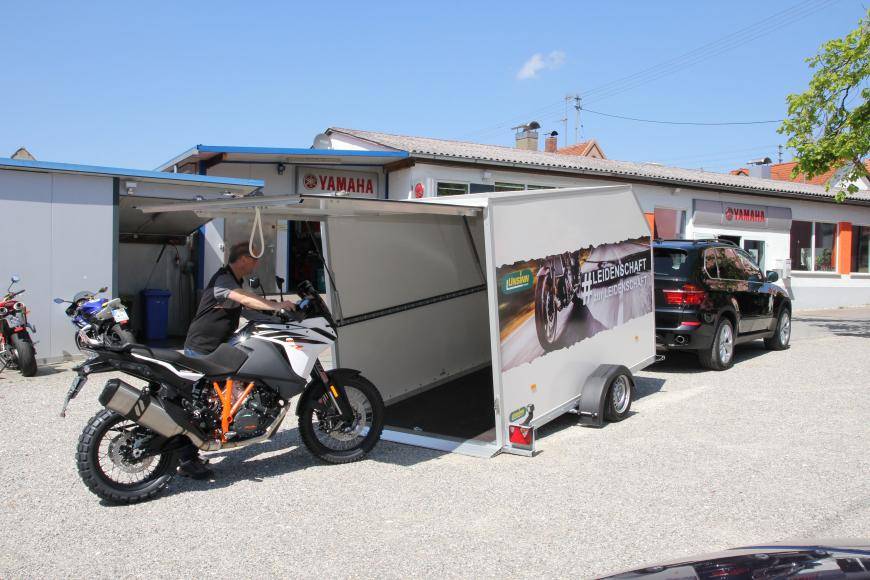 Um das Motorrad mit dem Anhänger transportfähig zu machen, gibt es unterschiedliche Zubehör-Möglichkeiten:
