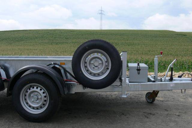• Verstärktes, an einer separaten Quertraverse montiertes Automatikstützrad mit einer Tragkraft von 500 kg für sicheres Abstellen des Anhängers