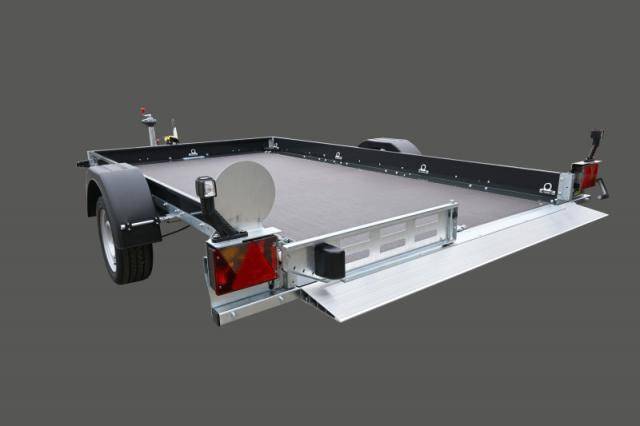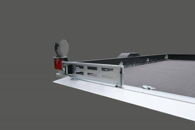 - Durchgehender Auffahrkeil mit klappbarem Kennzeichenhalter zur Nutzung der gesamten Ladeflächenbreite (zum Auffahren)