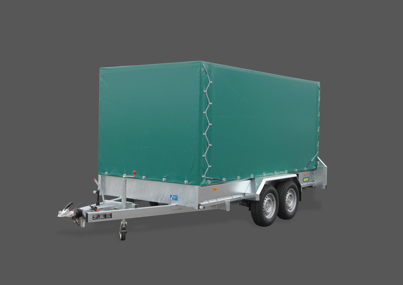• Planenaufbau mit Aluminiumgestell inkl. Hochplane in Planenfarbe nach Farbkarte, Drehkrampen verzinkt, Schleuderverschluss,