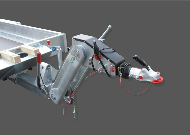 • Verstärktes, an einer separaten Quertraverse montiertes Automatikstützrad mit einer Tragkraft von 500 kg für sicheres Abstellen des Anhängers