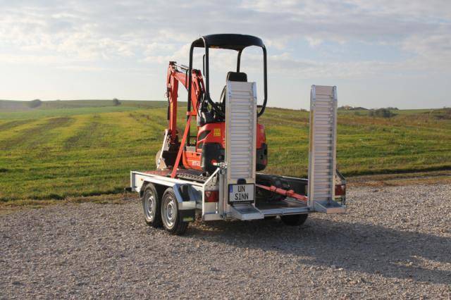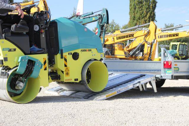 • Zwei abklappbare, seitenverstellbare und seitlich wegschwenkbare Auffahrschienen aus Aluminium mit integrierter Bodenabstützung und einer Tragkraft von 3500 kg/Paar