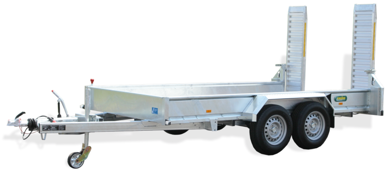 Zwei abklappbare, seitenverstellbare und seitlich wegschwenkbare Auffahrschienen aus Aluminium mit integrierter Bodenabstützung und einer Tragkraft von 3500 kg/Paar