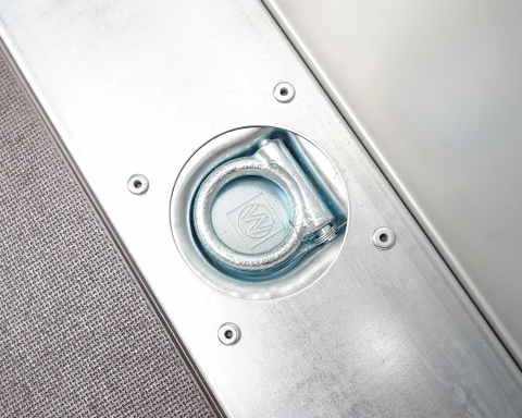 • 4 klappbare Zurrmulden, im Bodenrahmenprofil versenkt montiert