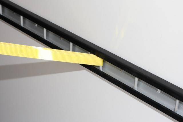 Stäbchenzurrschiene aus Aluminium mit Gummi ummantelt an der Stirnwand auf Höhe 900 mm montiert, IB 1770 mm