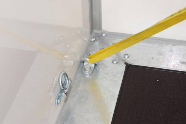 • 6 Zurrringe in der Seitenwand, klappbar, symmetrisch verteilt, jeweils belastbar mit bis zu 300 daN (kg)