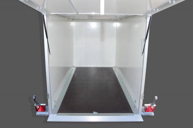 • Heckklappe nach oben zu öffnen mit Gasfederunterstützung und außenliegendem absperrbarem Edelstahl- Drehstangenverschluss, Öffnungsmaße (B x H): 1700 x 1840 mm, Innenhöhe 1940 mm