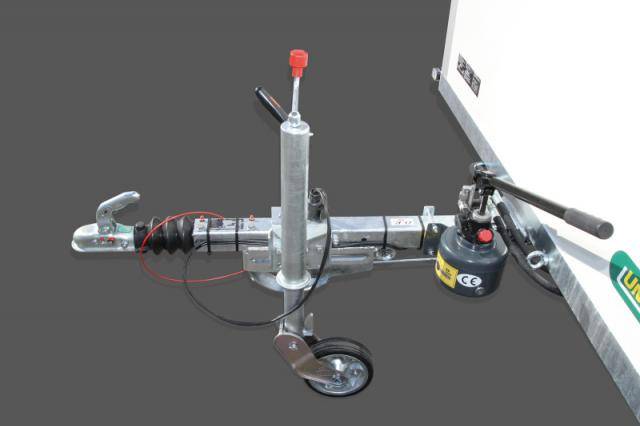 • Zugrohrdeichsel mit verstärktem Automatikstützrad (Tragkraft von 500 kg für sicheres Abstellen des Anhängers)