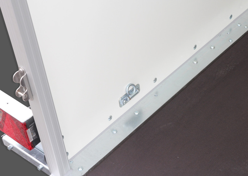 6 Zurrmulden seitlich in der Bodenplatte montiert, in Kombination mit Alu-Riffelblechbelag oder Kunststoffboden,