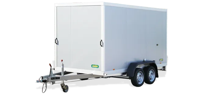 • Tür mittig in der Stirnwand, mit Aluminium-Einfassung, Türdichtung, Türdrückergarnitur innen und außen mit Zylinderschloss, Durchgangsmaß H x B = 1800 x 650 mm, inkl. Auftritt auf die V-Deichsel