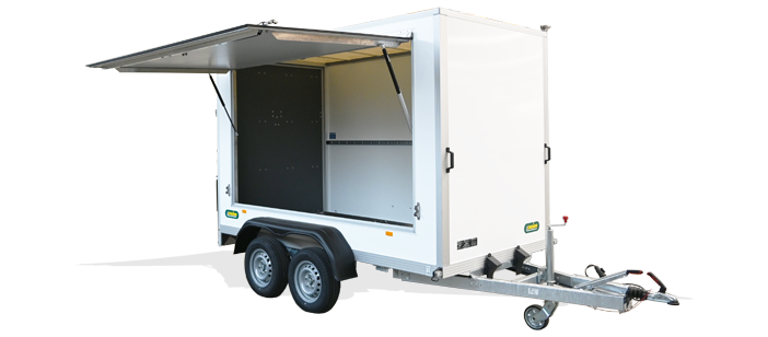 • Wände aus selbst produzierten, gewichtsoptimierten Unique Panels für deutliche Nutzlaststeigerung, bestehend aus GFK-Stahl-Sandwich in Verkehrsweiß (RAL 9016)