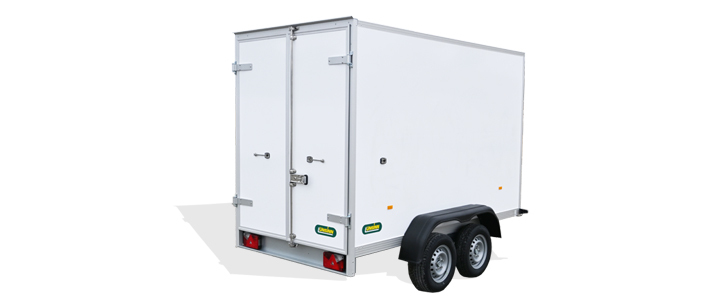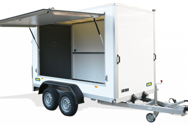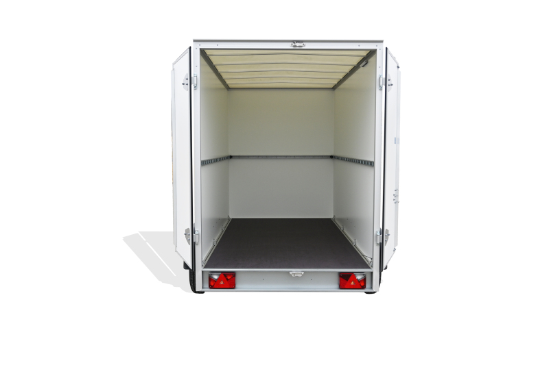 - Wände aus selbst produzierten, gewichtsoptimierten Unique Panels für deutliche Nutzlaststeigerung, bestehend aus GFK-Stahl-Sandwich in Verkehrsweiß (RAL 9016)