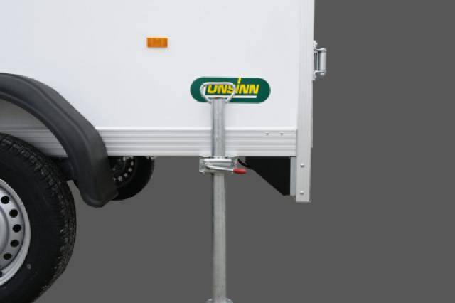 - Verstärktes, an einer separaten Quertraverse montiertes Automatikstützrad mit einer Tragkraft von 500 kg für sicheres Abstellen des Anhängers