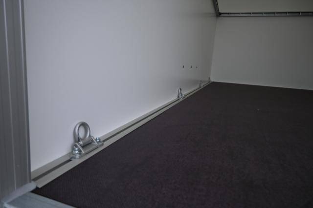 - Stäbchenzurrschiene für Spanngurte und Sperrstangen an den Seitenwänden & der Stirnwand auf Höhe 900 mm montiert