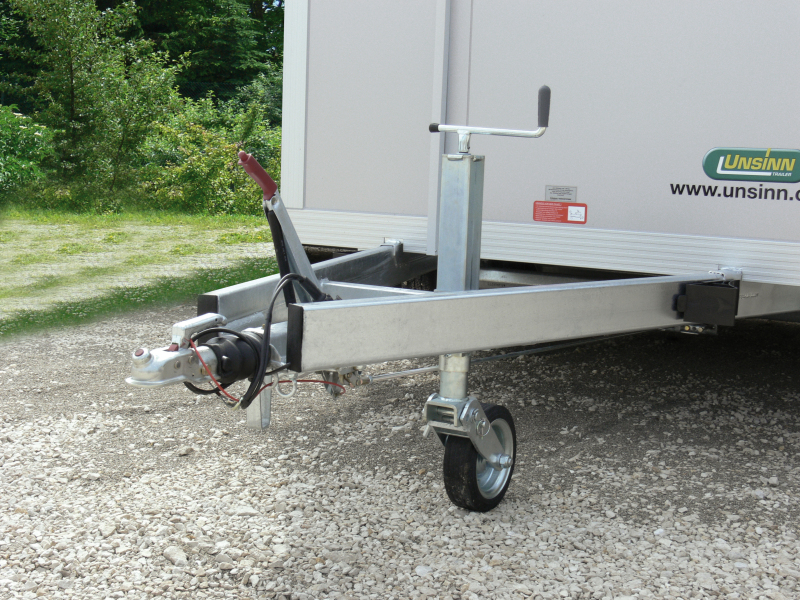 - Verstärkt montiertes Automatikstützrad mit einer Tragkraft von 500 kg für sicheres Abstellen des Anhängers