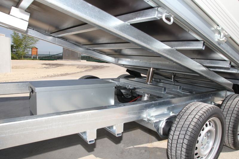- Hydraulische Zweiseitenkippung für Schüttgut mit einem großen, seitlichen Kippwinkel von 48°
