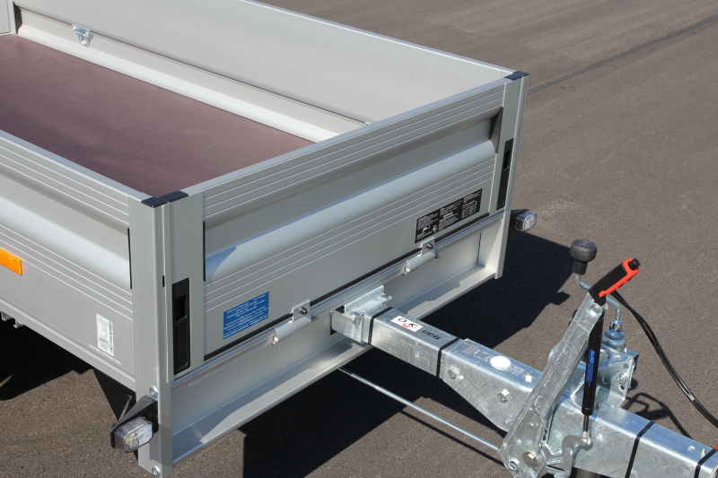 Bordwandaufsatz aus eloxiertem Aluminium 400 mm, UNSINN-Profil, in Kombination mit Deckel aus Aluminium mit Gasfederunterstützung, heckseitig zu öffnen,