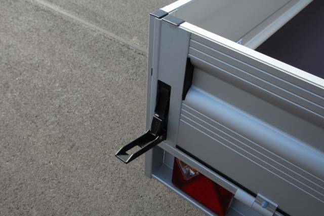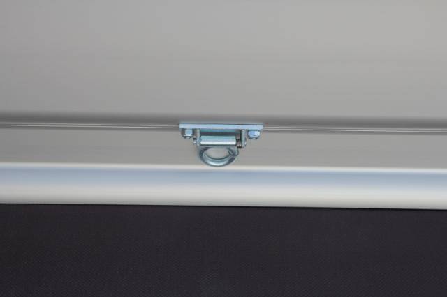 Bordwandaufsatz aus eloxiertem Aluminium 300 mm, UNSINN-Profil, in Kombination mit Deckel aus Aluminium mit Gasfederunterstützung, heckseitig zu öffnen,