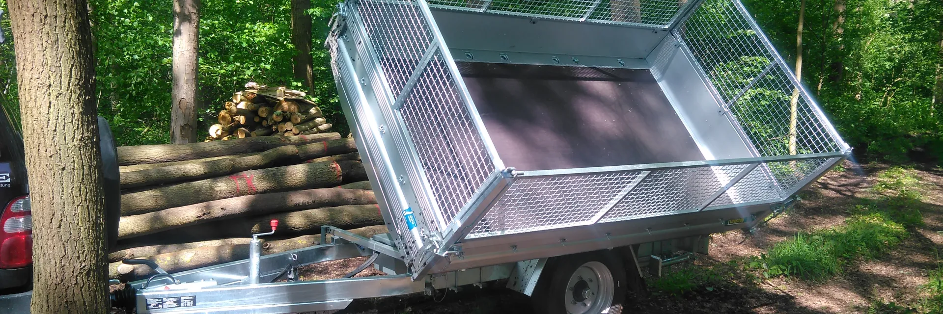 Der Anhänger hat seine Bewährungsprobe im Wald bei der Holzarbeit und auch schon als Umzugshelfer mit Bravour gemeistert. Die Einzel-Achse als 3-Tonner macht das manuelle Handling einfach Klasse.