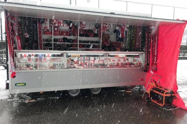 Schnell aufgebaut und alles dabei! Der Fanartikel-Shop ist an den unterschiedlichsten Orten sehr flexibel einsetzbar. Klappe auf und die tollen Artikel können an den Fan gebracht werden.