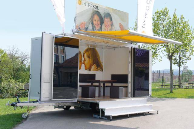 Ein Promotionanhänger, der mit allen notwendigen Utensilien für eine Messe bestückt ist, erspart viel organisatorische Arbeit und vor allem Zeit. Der Anhänger ist schnell am Stand aufgebaut und die Vorführobjekte können produktgerecht präsentiert werden.