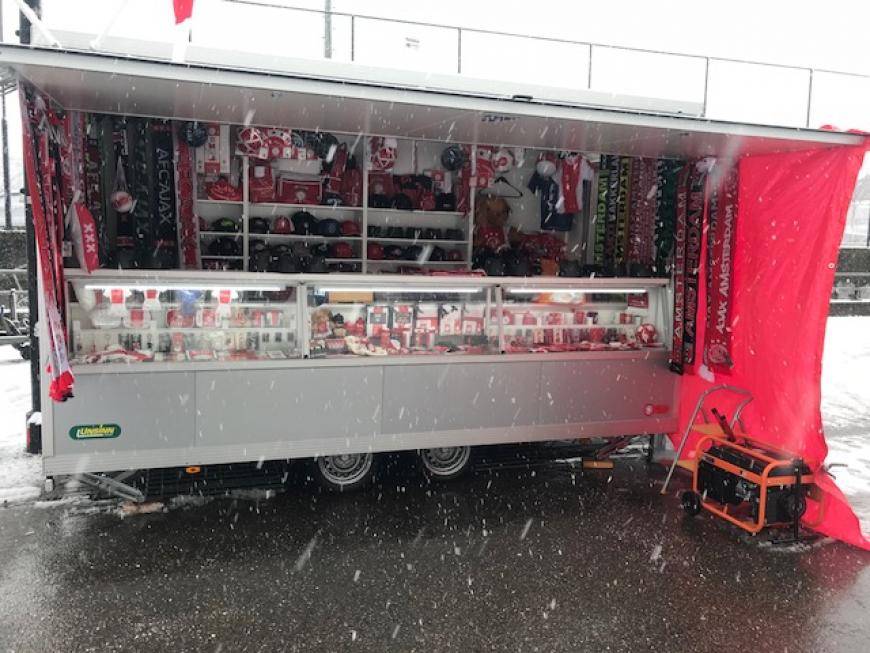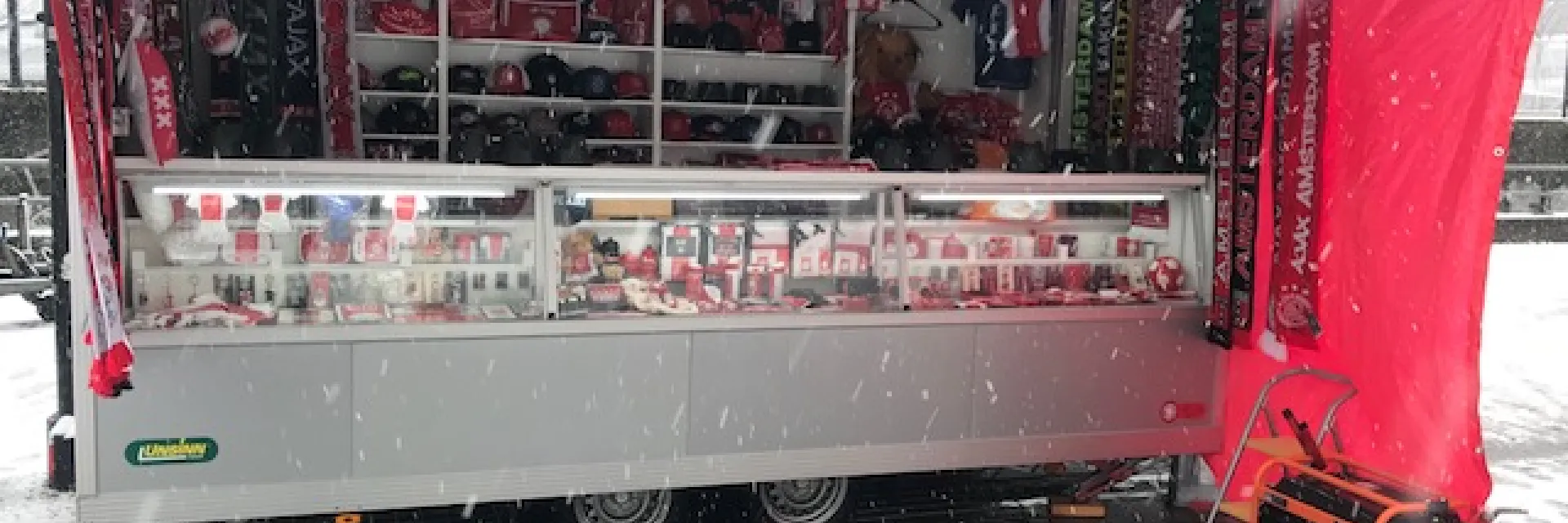 Schnell aufgebaut und alles dabei! Der Fanartikel-Shop ist an den unterschiedlichsten Orten sehr flexibel einsetzbar. Klappe auf und die tollen Artikel können an den Fan gebracht werden.