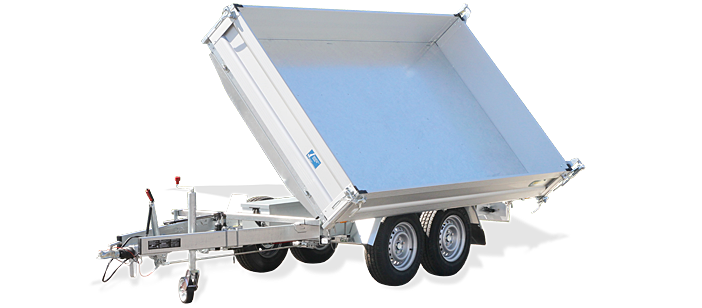 Die flexiblen Kippmechanismen des Dreiseitenkippers ermöglichen einfaches Abladen bzw. Entleeren der Ladung zu beiden Anhängerseiten und nach hinten. Frachten wie Schüttgut, Palettenware, Gitterboxen, diverse Materialien oder Maschinen können auf diese Weise einfach transportiert und komfortabel abgeladen werden. Die Einsatzmöglichkeiten von Dreiseitenkippern sind praktisch unbegrenzt und können in der Bauindustrie, im Garten- und Landschaftsbau oder für den Transport von Maschinen, Arbeitsgeräten und Materialien aller Art eingesetzt werden. UNSINN bietet eine breite Palette unterschiedlicher Dreiseitenkipper mit einem Gesamtgewicht von 1800 bis 3500 kg. Neben der Serienausstattung können Sie UNSINN Anhänger auch in höherwertigeren Ausstattungen wählen.
