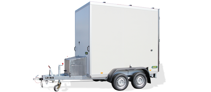 Optisch unterscheiden sich die Kühlfahrzeuge kaum von handelsüblichen Kofferanhängern. Die Unterschiede liegen in der Bauweise und den verbauten Komponenten. Die Kühlanhänger werden in Sandwich Bauweise hergestellt – dabei wird zwischen Innen- und Außenwand eine isolierende Schicht verbaut. Durch ein leistungsstarkes Kühlaggregat wird so für eine optimale, energiesparende Kühlung ohne Kühlverlust gesorgt.