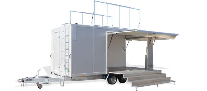 Für Messen, Werbeveranstaltungen, Roadshows, Firmenfeste oder andere Events haben wir einen Anhänger entwickelt, der ideal als mobile Präsentationsfläche oder Eventbühne eingesetzt werden kann.