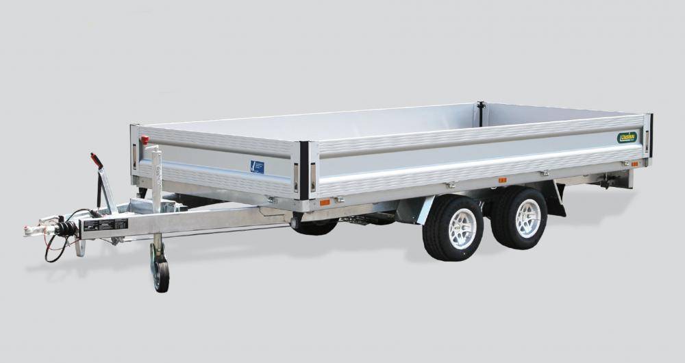 Als vierten Editionsanhänger, mit einem zulässigen Gesamtgewicht von 3000 kg, präsentieren wir unseren Dreiseitenkipper UDK 3030-14-1750 mit schwarzen Eckrungen, schwarzer Netzleiste unter der Bordwand und dem UNSINN-Profi-Netz.