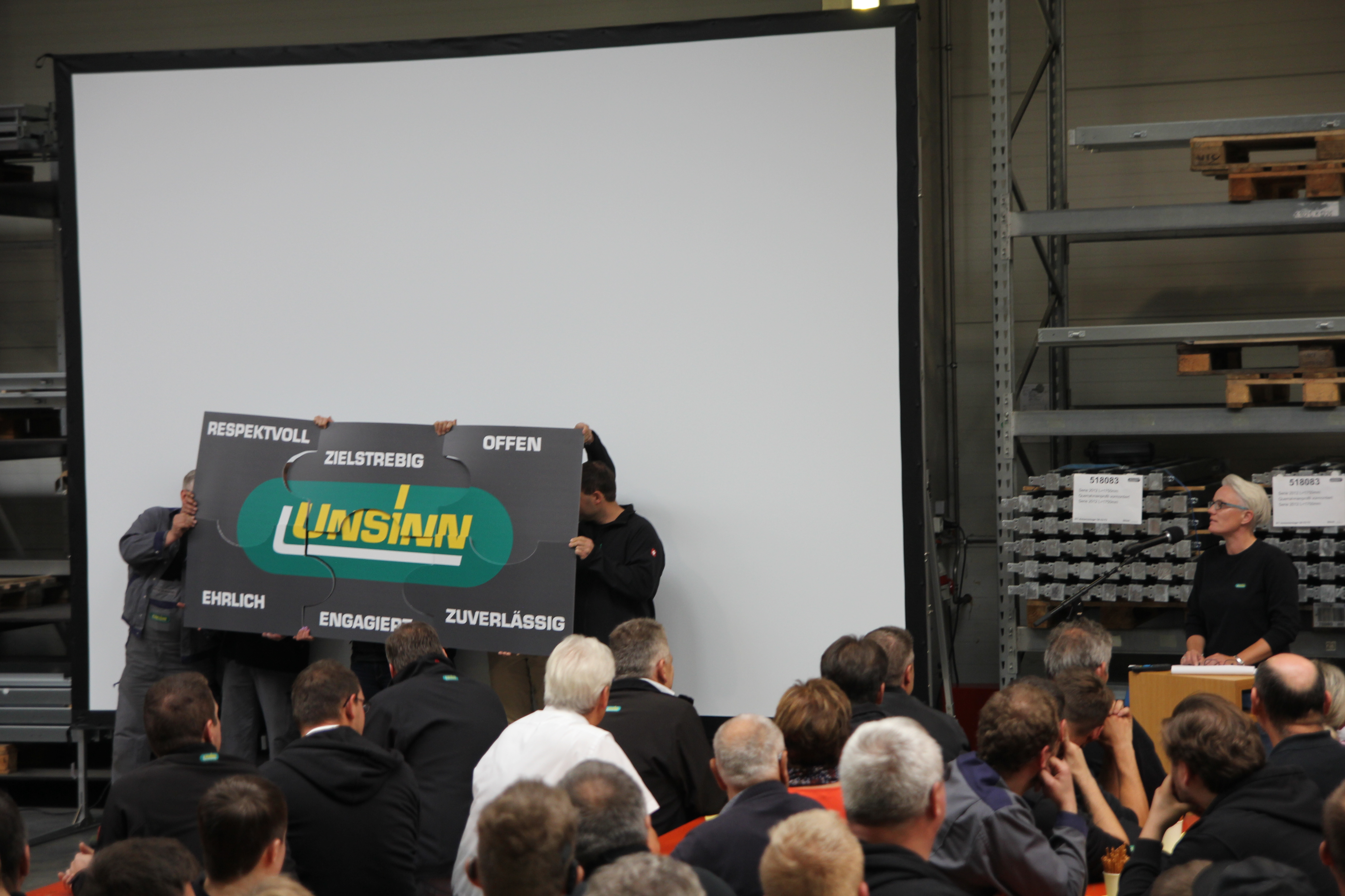 Im Oktober fand bei uns intern eine Infoveranstaltung für das komplette Kollegium statt, es wurde über die aktuelle Lage berichtet und ein kleiner Ausblick auf 2020 wurde geboten. Hier wurden auch die intern erarbeiteten UNSINN-Werte sehr bildlich vorgestellt: Jedes TEAM.UNSINN Mitglied ist ein tragendes Puzzleteil am Gesamten. Anschließend gab es eine Brotzeit in Form eines Grillbuffets. Da hieß es dann man grillt an den von unseren Azubis gebauten großen Barbeque-Grills. Bei Kicker, Tischtennis und Darts konnte in ausgelassener Stimmung gemeinsam der Feierabend verbracht werden.