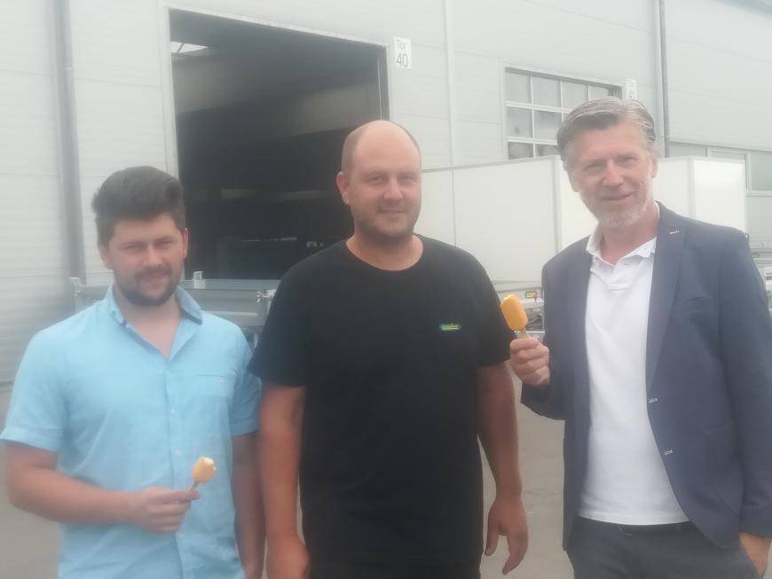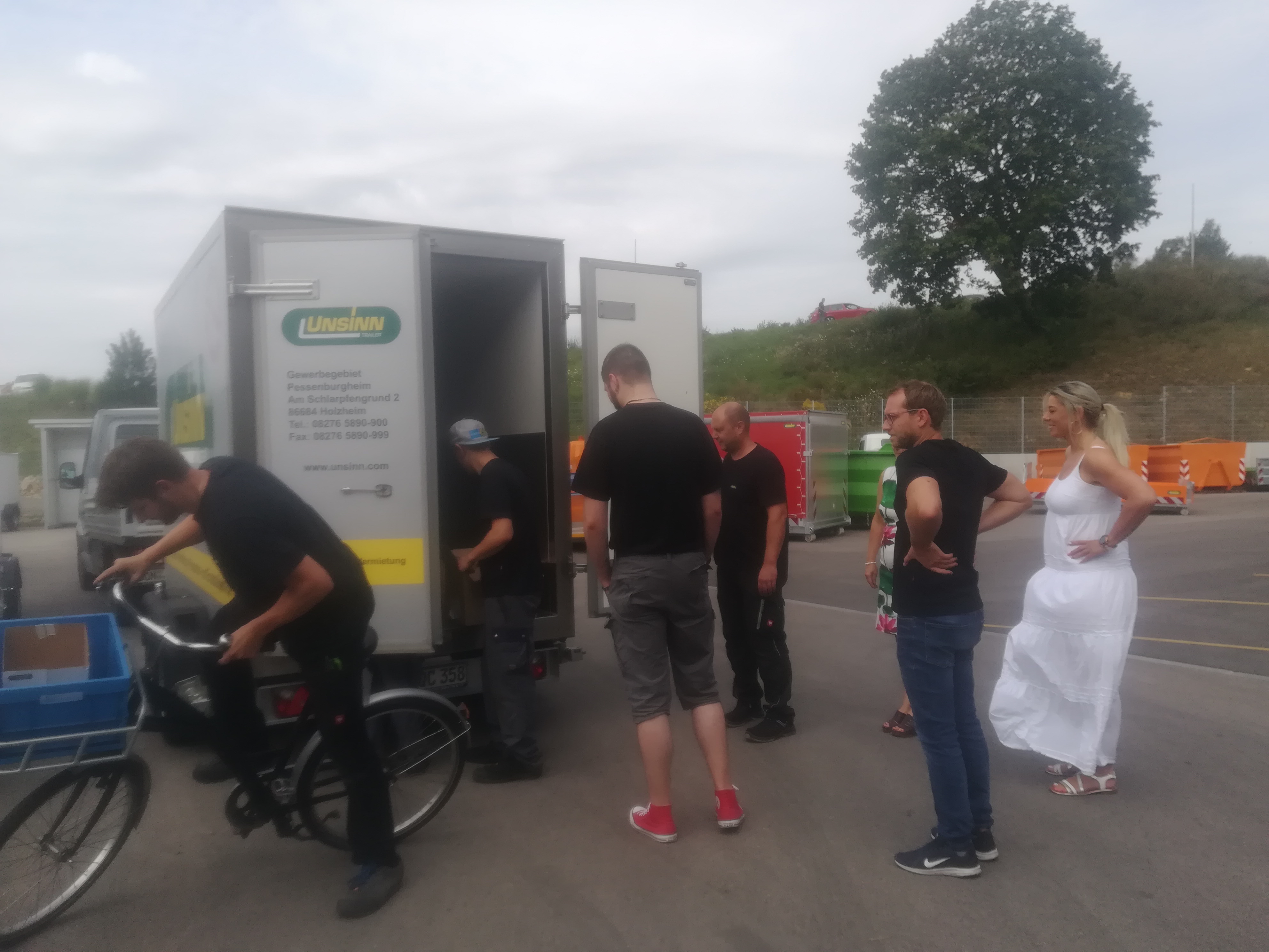 Bei den sommerlichen Temperaturen gab es für die komplette Belegschaft von der Geschäftsleitung Eis. In der Mittagspause wurde direkt aus unserem UNSINN Kühlanhänger an die Kolleginnen und Kollegen die leckere Abkühlung verteilt. So lässt es sich viel entspannter in den Nachmittag starten.