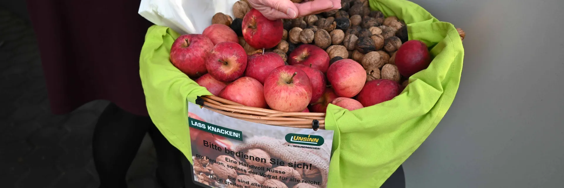 Mitte November überraschte uns das Gesundheitsmanagement mit einer weiteren gesunden Aktion. Es gab leckere Walnüsse und Äpfel für alle! Diese kamen direkt aus dem Garten von unserer Seniorchefin Sofie Unsinn. Danke für den gesunden Snack!