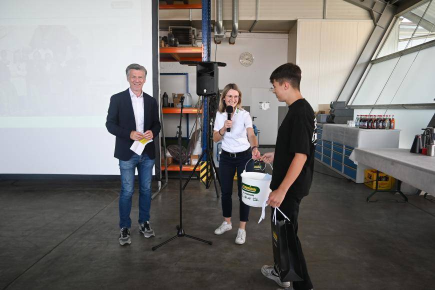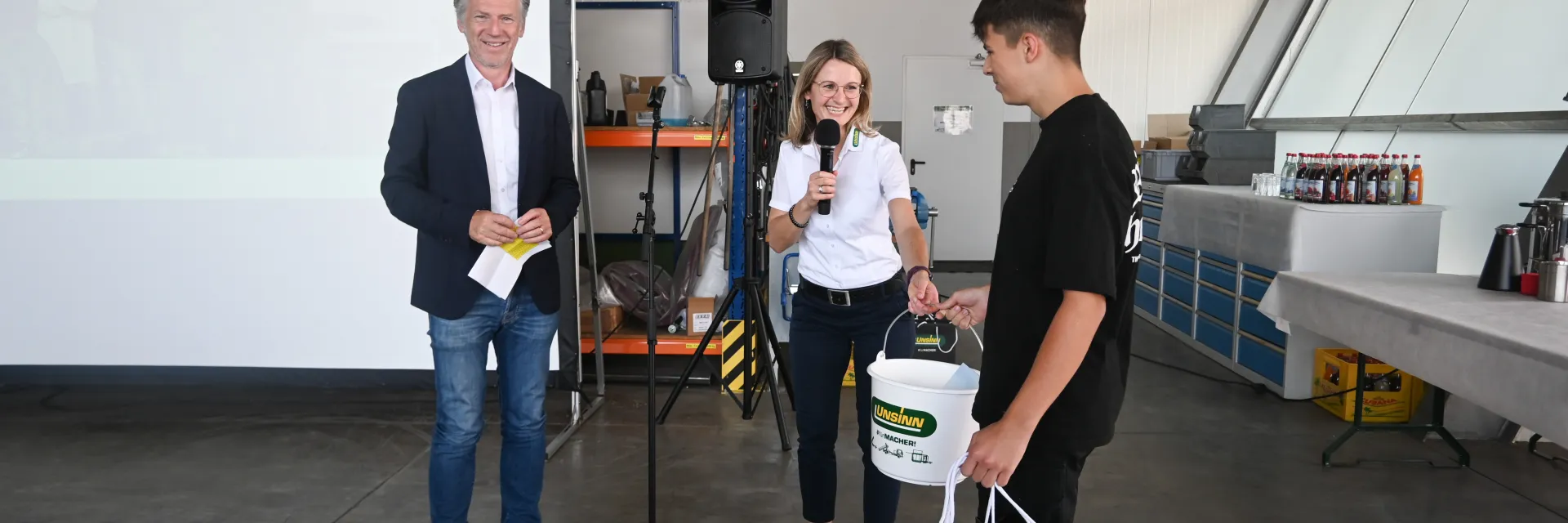 Nach einer Vorstellung der jeweiligen Ausbildungsberufe und Ausbilder, folgte eine Betriebsführung für die anwesenden Eltern. Markus Hölzl, Gebietsverkaufsleiter, führte sie durch die Produktionshallen und gab Einblicke hinter die Kulissen bei UNSINN. Parallel dazu durften die Nachwuchskräfte im UBA ihre neue Arbeitskleidung anprobieren, um für den Ausbildungsstart gerüstet zu sein.